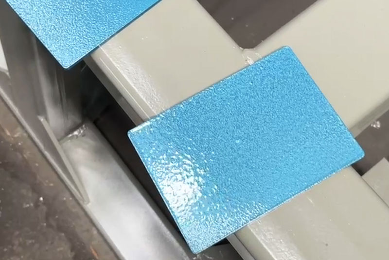 06 多棱面的工件噴涂錘紋漆時,要考慮到相鄰表面之間相互沾污的可能性會影響到錘紋的美觀性,應按先上后下,先左后右,工件面盡可能水平面進行噴涂。