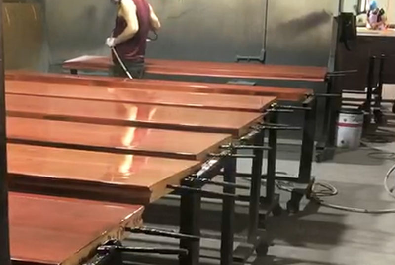 清漆的噴涂一般是噴涂2~3遍,按照廠家比例配好之后,第一遍采用半干濕噴涂,不要噴太厚太亮,間隔5~10分鐘左右(取決于環(huán)境溫度)再噴第二遍,第二遍采用濕噴,速度稍慢走均勻,噴出來(lái)的效果看起來(lái)厚實(shí)光滑,光亮度高,檢查漆膜的平整度及飽滿度。如果感覺(jué)光亮度達(dá)不到,再噴涂第三遍,要注意流掛問(wèn)題。高濃清漆一般兩遍即可達(dá)到效果。